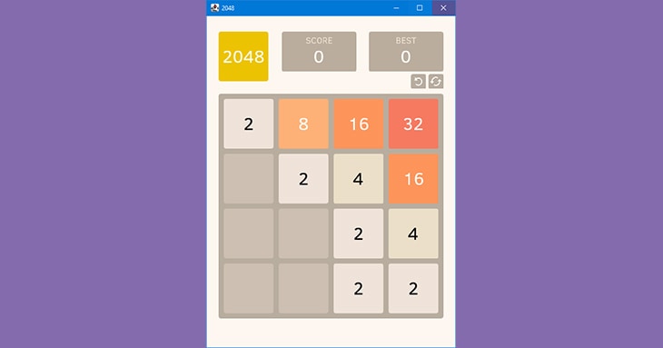 In the previous step we have added PositionMap class for the game state and initial code that handles interaction. In this step we are going to define the main logic of the game - the movement and merging of blocks. We'll also add animation for that. So the resulting game after this step will be quite playable and will look like this: